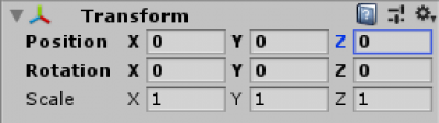 3. Afterwards, make sure the SnowCannon_collis is selected in the hierarchy and set all coordinates in the Transformcomponent in the Inspector to 0 and make sure the scale is in every direction 1!