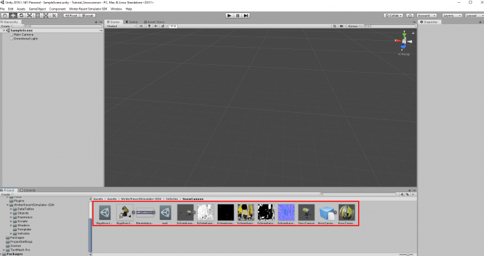 To create a snowcannon for the Winter Resort Simulator you will need to install the Modding SDK install the Modding SDK. In our case, we name the Unity project “Tutorial_Snowcannon”, but you can give it any name you'd like. After installing, you can to browse to Tutorial_Snowcannon\Assets\Assets\WinterResortSimulator-SDK\Vehicles.