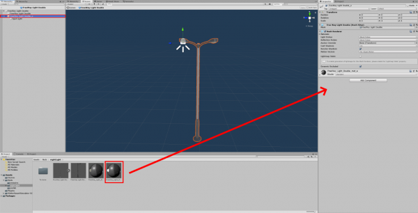 Therefore select the respective obect in the hierarchy on the left side and then drag the material from the project window to the inspector window in the right and drop it.