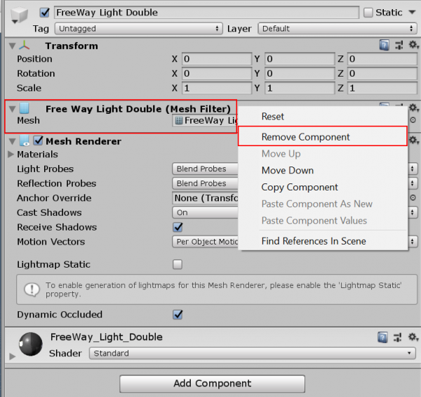 Now select the object at the top and remove the Mesh Filter and Mesh Renderer with a right click on the component and remove component.