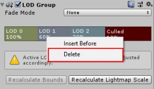Do this step again with the LOD 1 area of the LOD Group if you do not have a LOD 1 object.