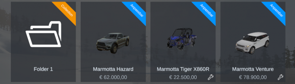 ModLoader.addContent("directory", { contentName = "ExampleVehiclesDir", shopCategory = "vehicles", title = "Vehicles folder", description = "This folder contains a lot of vehicles", previewFilename = "$image/folderIcon", }); ModLoader.addContent("vehicle", { contentName = "ExampleVehiclesDir.ExampleVehicle1", shopCategory = "vehicles", title = "Example vehicle", description = "Example vehicle description", previewFilename = "$image/vehicle", });