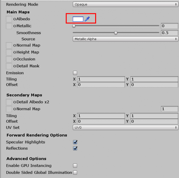 Click onto the white panel next to Albedo to choose a colour.